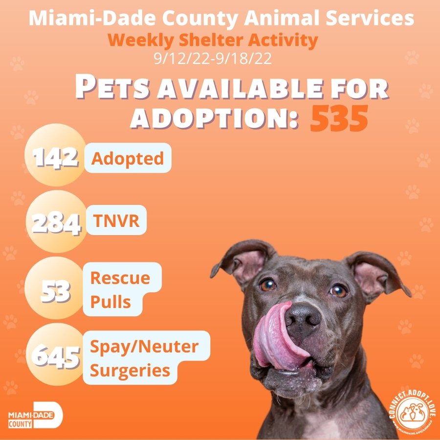 Is in regards to the Miami Co. VISIT OUR ADOPTABLE PETS Come in to view our adoptable animals. 311 or 305-468-5900 Shelter hours.